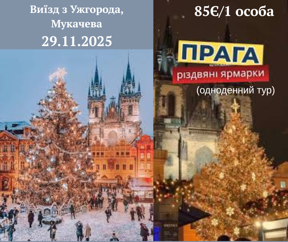 Різдвяні ярмарки Європи Грудень 2025 (див. в описі) Будапешт - 65Є / 50Є (діти до 12 років) Кошице - 40Є / 30Є Прага - Карлові Вари - 180Є / 160Є Відень - 75Є / 65Є Краків - 65Є Детальніше